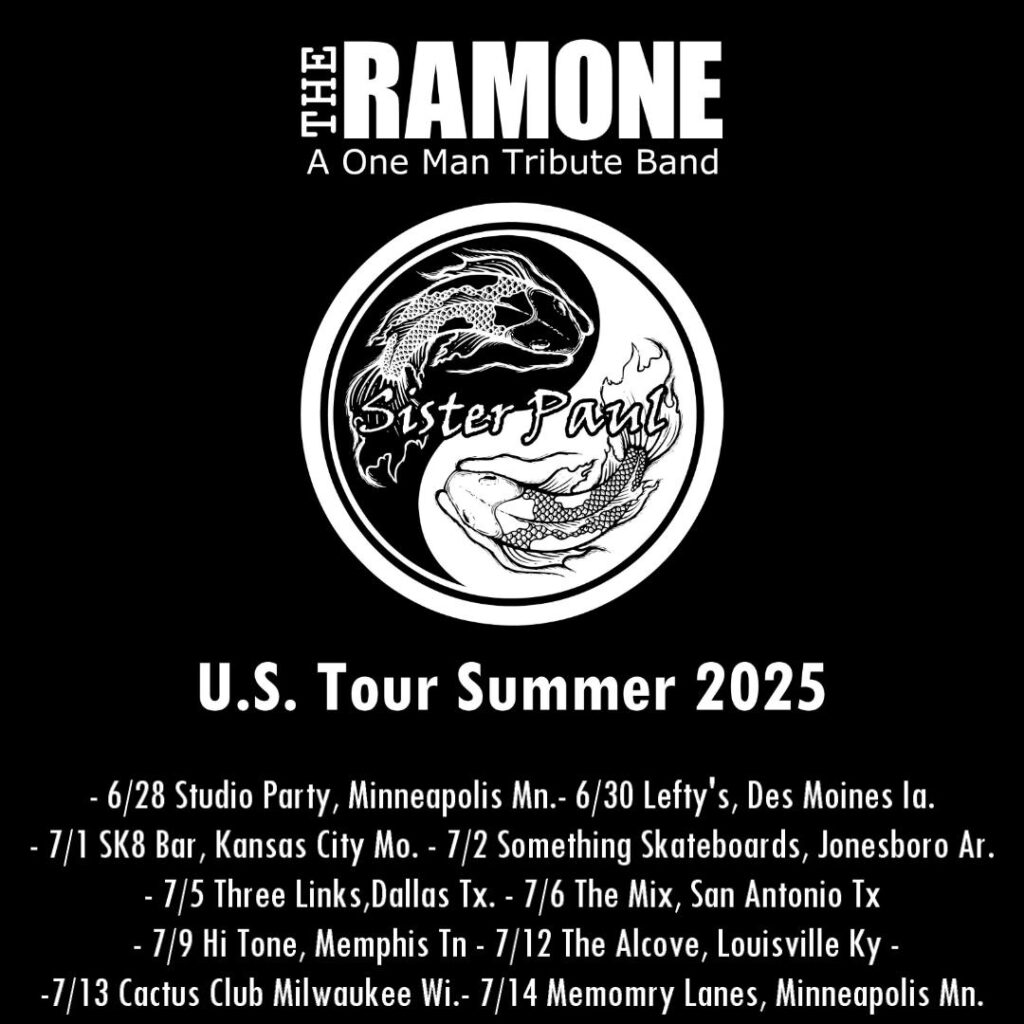 The new Sister Paul/The Ramone U.S. Tour 2025 shirts are available now. All sizes available at $30+Shipping or $20+Shipping for Patreon Supporters. Comes with complimentary access to the online tour diary with updates, blogs and videos from the tour. Sales platform coming soon. For now email me at rockythereamone@gmail.com